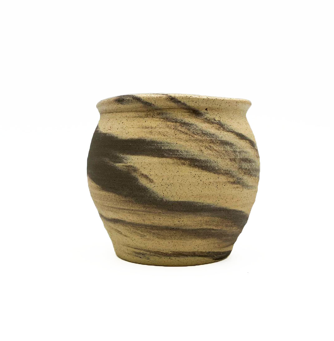 Kubek utoczony z gliny z niebieskim pigmentem tworzący niepowtarzalne, ciągnące się wzory. Od wewnątrz kubeczek jest pokryty przezroczystym szkliwem. Można używać do celów spożywczych.